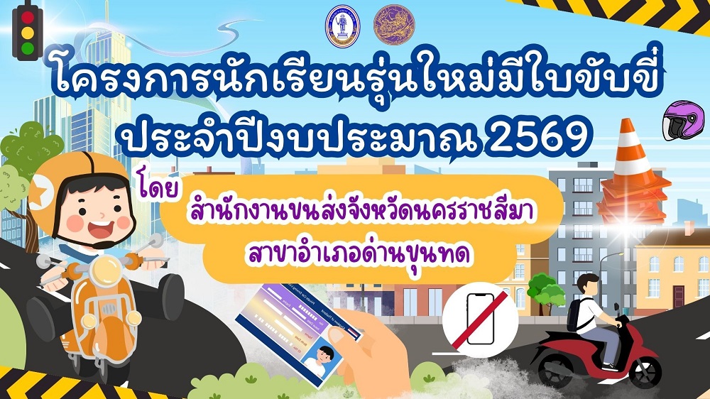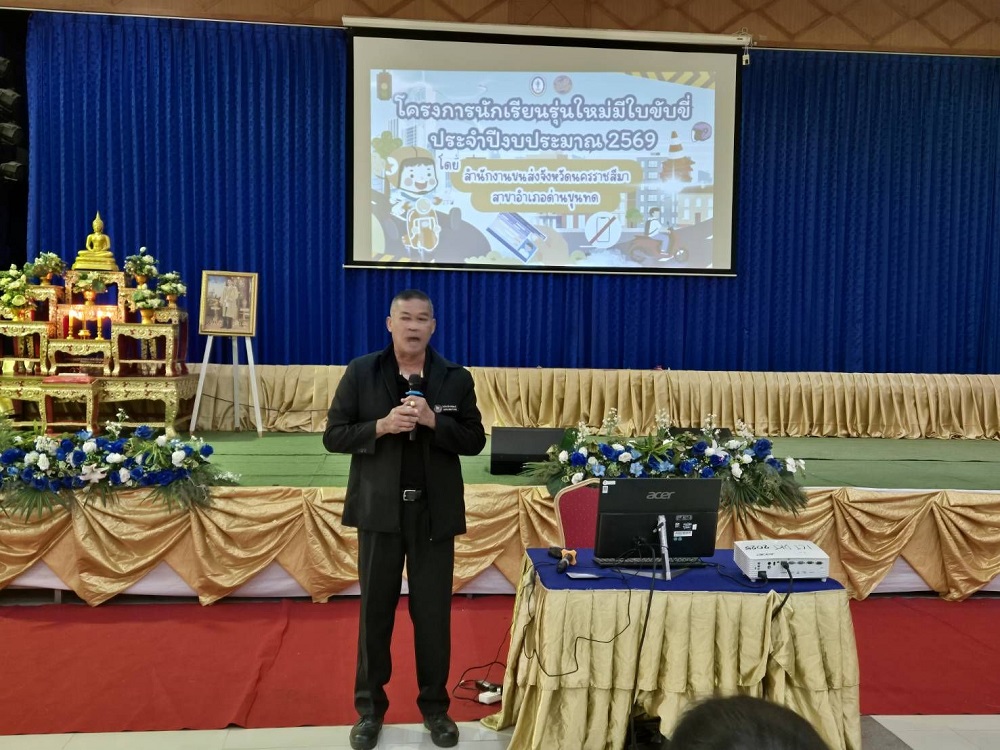 | โรงเรียนด่านขุนทด ร่วมกับสำนักงานขนส่งจังหวัดนครราชสีมา สาขาด่านขุนทด ดำเนินการจัดการอบรมใบอนุญาตขับขี่รถจักรยานยนต์ ให้กับนักเรียนโรงเรียนด่านขุนทด ตามโครงการนักเรียนรุ่นใหม่มีใบขับขี่ ประจำปีงบประมาณ 2569 ณ หอประชุมโรงเรียนด่านขุนทด อำเภอด่านขุนทด จังหวัดนครราชสีมา |