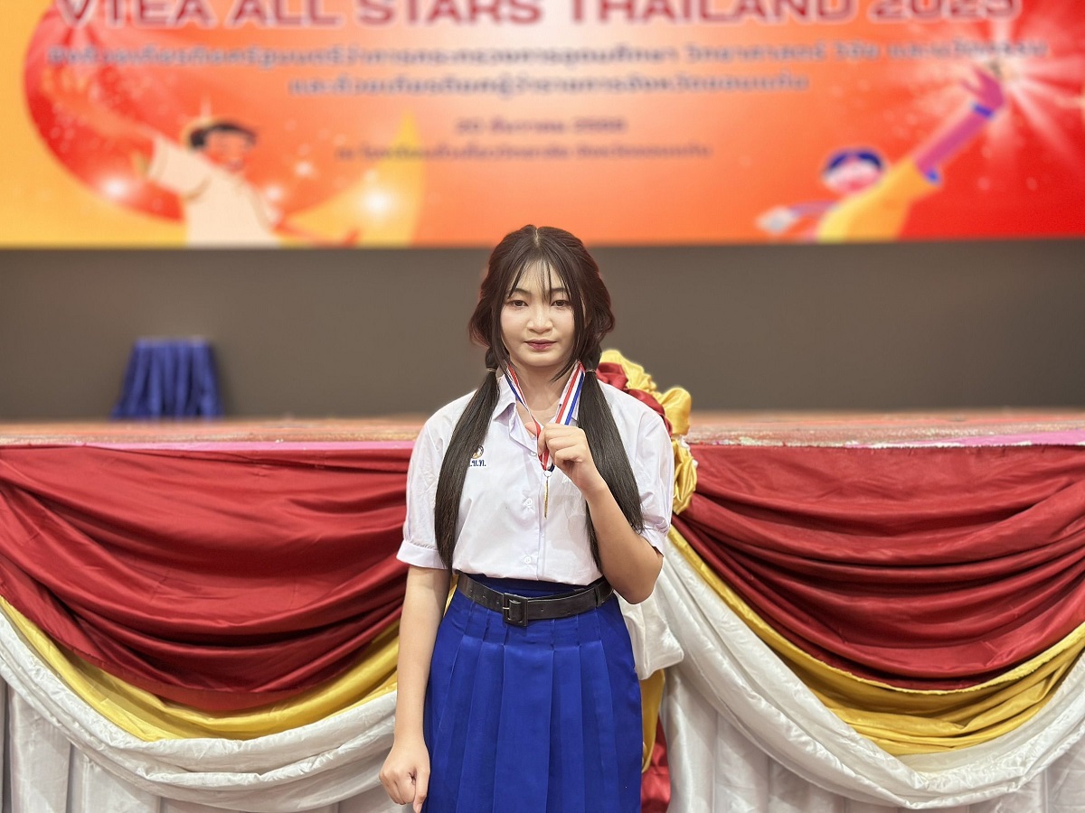 2. เด็กหญิงศิราพรรณ เรืองจาบ ชั้นม.2/1 ได้รับรางวัลเกียรติบัตรเหรียญทองลำดับที่ 22